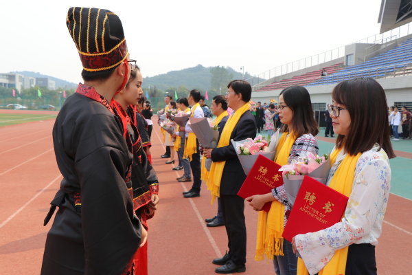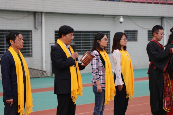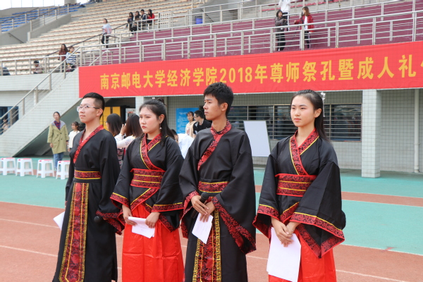 2018年10月17日,农历九月九日“重阳节”中午,贝博艾弗森代言体育官网在仙林校区主体育场举行2018年尊师祭孔暨成人礼仪式,旨在传承中华优秀传统文化,彰显校园文化特色,弘扬尊师敬老精神,引导新生成长成才。贝博艾弗森代言体育官网党委张强书记、院长黄宝凤教授、董军副书记、关工委委员蒋华园教授、优秀教师代表尹勤教授及新生班主任老师代表和2018级新生等230余人参加了此次活动。2018级4位新生同学担任主持。